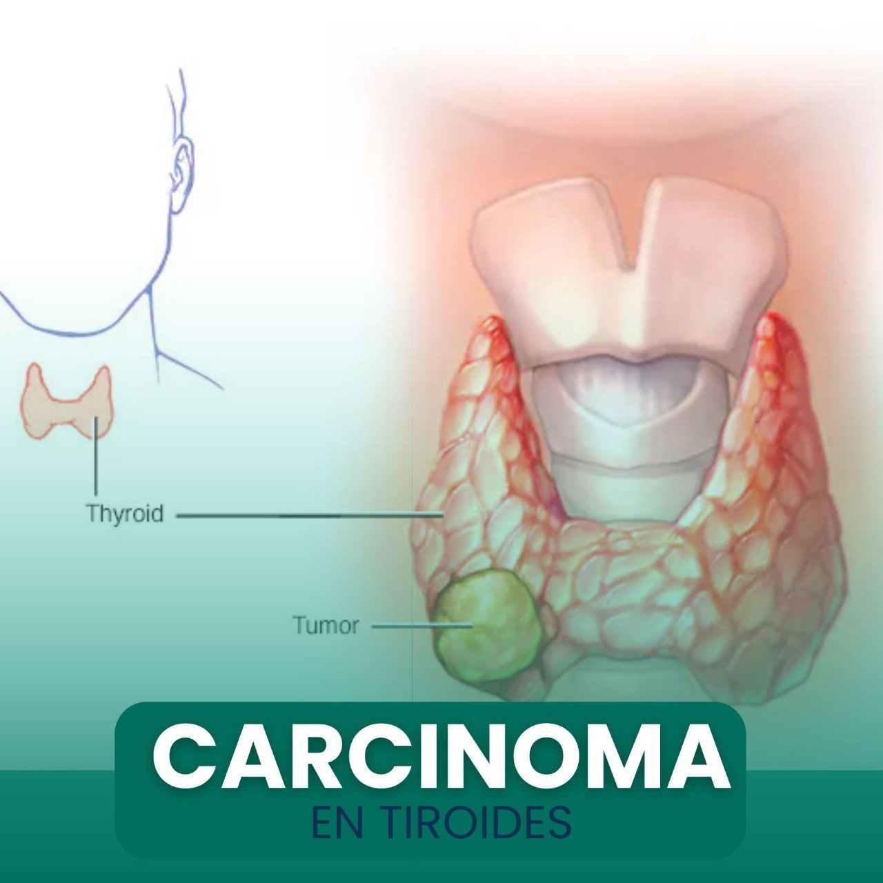 Es un tumor maligno que se origina en la glándula tiroides. Se manifiesta principalmente como un nódulo en el cuello, y en algunos casos, como crecimiento de los ganglios linfáticos cervicales. El carcinoma papilar es el tipo más común, representando el 80-90% de los casos. El tratamiento depende del tipo de cáncer y su estadio, pudiendo incluir cirugía, yodo radiactivo, terapia de reemplazo de hormonas tiroideas, radioterapia y, en algunos casos, quimioterapia.