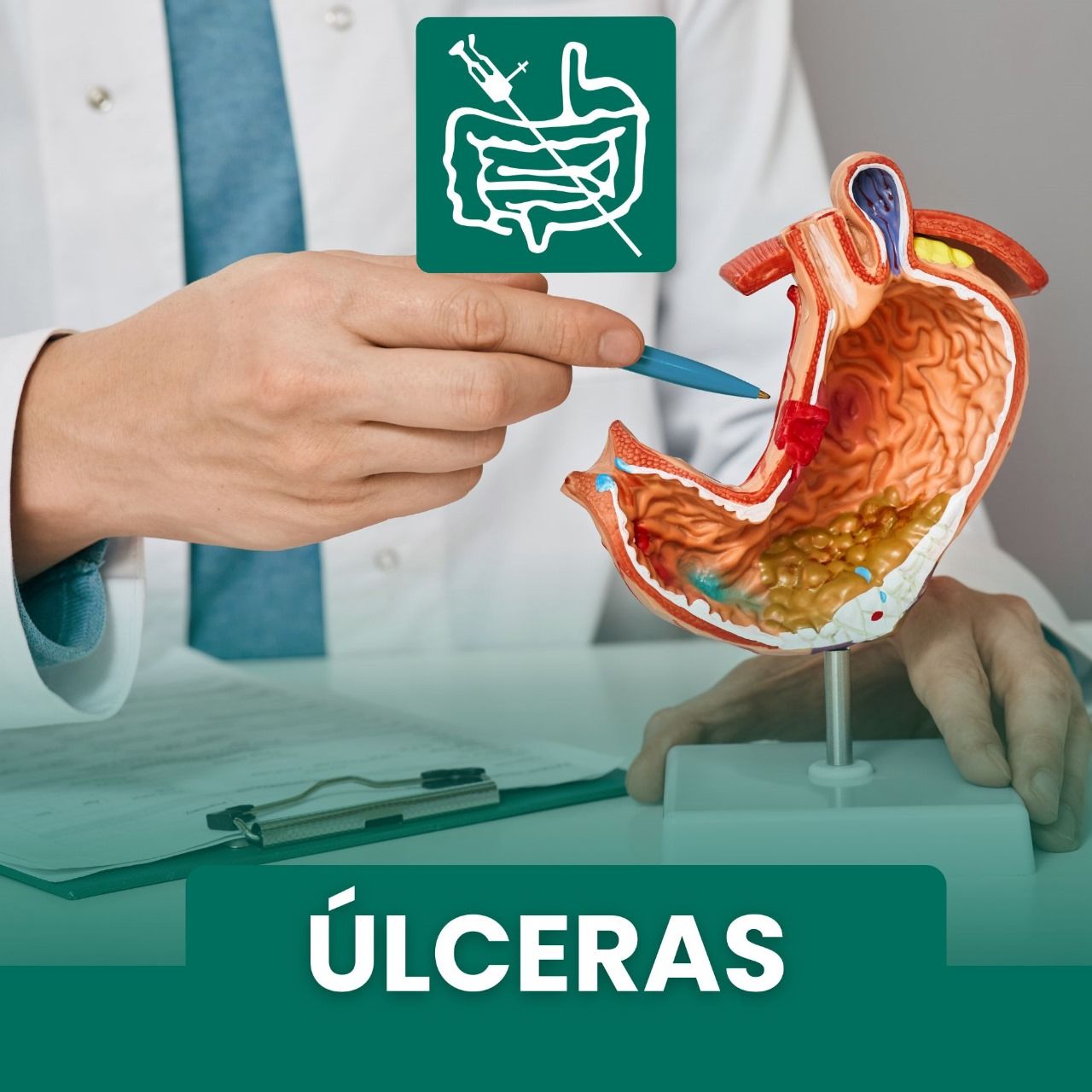 • Úlcera Péptica: en el estómago o duodeno, con síntomas de dolor epigástrico.